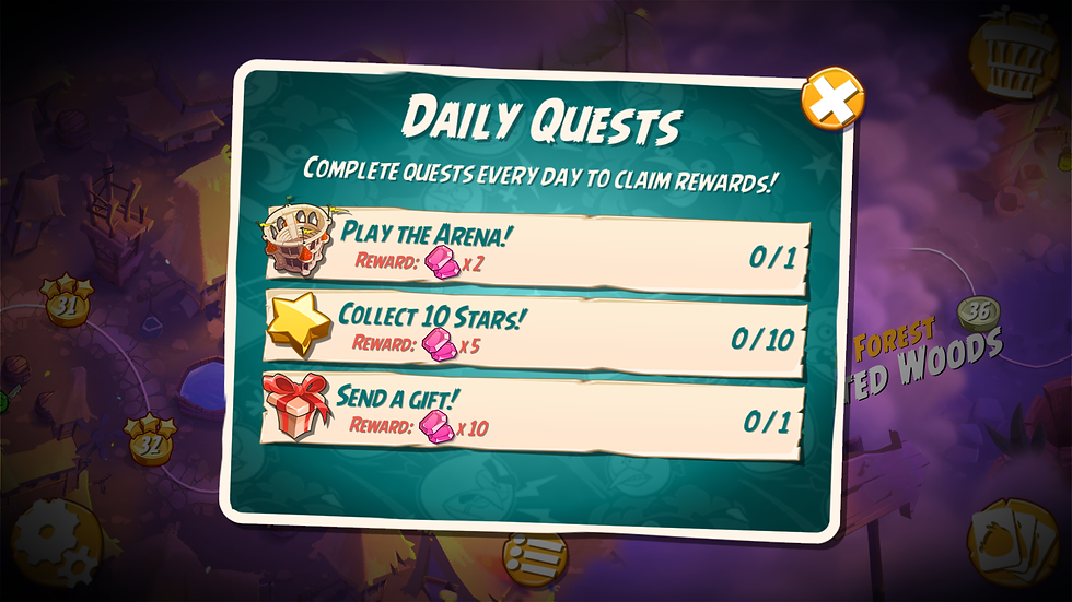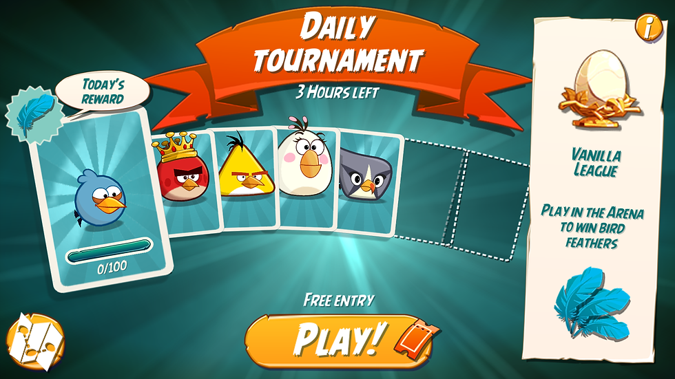 There is a Coliseum to compete against other online players for a higher score and bird feathers which make angry birds tougher and more ferocious. There is a daily gift as well as daily missions.